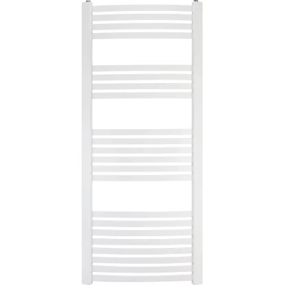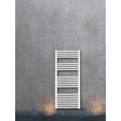 Der elegante Badheizkörper Arnsberg lässt in Ihrem Badezimmer eine angenehme Raumtemperatur entstehen. Gleichzeitig dient er zum Aufhängen und Trocknen von Handtüchern. Er bietet Ihnen ein modernes, gebogenes Design mit flachen Lamellen in der neutralen Farbe Weiß und zeichnet sich durch eine gute Wärmeleitfähigkeit sowie lange Lebensdauer aus. Mit seiner Nennleistung von 693 W erzeugt der Handtuchtrockner angenehme Wärme bei geringem Energieverbrauch. Gefertigt ist das Heizsystem aus Metall. Dank seiner Oberflächenbeschaffenheit stellt es Ihnen eine schlag-, kratz- und abriebfeste Außenseite zur Verfügung. Die glatte Struktur ermöglicht Ihnen eine mühelose Pflege.