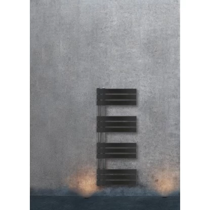 Der elegante Badheizkörper Limburg sorgt im Badezimmer oder Gäste-WC für eine angenehme Raumtemperatur und dient gleichzeitig zur Trocknung Ihrer Handtücher. Dabei bewirkt sein offenes und flaches Sprossendesign eine moderne Raumgestaltung. Der Heizkörper ist in der Farbe Schwarz gehalten und harmoniert mit vielen Badausstattungen. Mit seiner Leistung von 486 W besitzt er eine gute Wärmeverteilung, die zugleich Energie spart. Der Designheizkörper ist beschichtet, was eine bessere Wärmespeicherung herbeiführt. Zudem ist die Oberfläche unempfindlich gegenüber Kratzer und lässt sich leicht pflegen.
