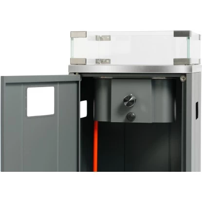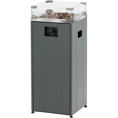 Über die geradlinige und moderne Form Buschbeck Terassenheizer Loungefeuer Malta Grau 7,5 kW ziehen die tanzenden Flammen die Blicke auf sich und sorgen für eine entspannte Atmosphäre. Entfacht wird das Feuer über eine Piezozündung und betrieben mit einer 11 kg Propan- oder Butangefüllten Gasflasche, die ganz praktisch in dem Innenraum verstaut werden kann. Ein mehrstufiger Regler kontrolliert die Zufuhr des Gases. Als Windschutz dienen die vier Glasscheiben aus Sicherheitsglas, die das Flammenspiel gekonnt in Szene setzen. Die im Lieferumfang enthaltenen Lavasteine wirken dekorativ und verfügen über eine gute Wärmespeicherung.