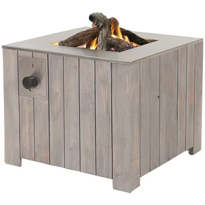 Die rustikale und massive Ausstrahlung der Douglasieverkleidung verleiht dem Outdoor-Kamin in Kombination mit der Edelstahl-Abdeckung ein elegantes Look & Feel. Zusätzlich verbreitet die lodernde Gasflamme über den Lavasteinen und den täuschend echt wirkenden Holzscheitimitaten aus Keramik ein stimmungsvolle Lagerfeuer-Atmosphäre mit gemütlicher Wärme.