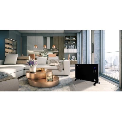 Der leistungsstarke und vielseitig einsetzbare El Fuego Elektro-Konvektor ist auch zur Wandmontage geeignet und bietet ein topmodernes, schlankes Design mit edler ganzflächiger Front aus Glas. Das eingebaute Thermostat und die automatische Steuerung ermöglichen eine einfache und komfortable Einstellung der gewünschten Temperatur, die das Gerät anschließend selbstständig hält.