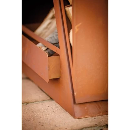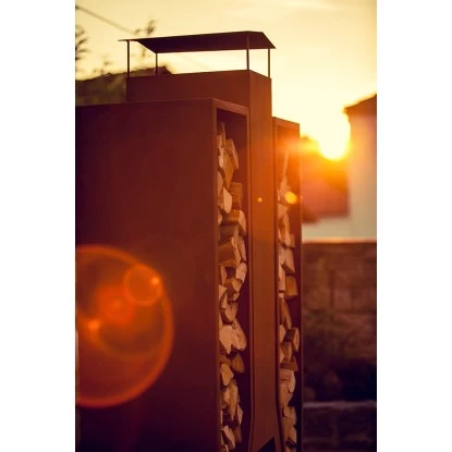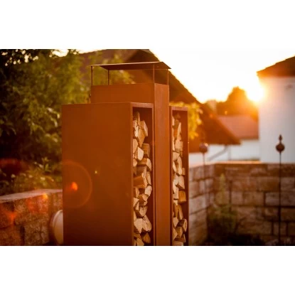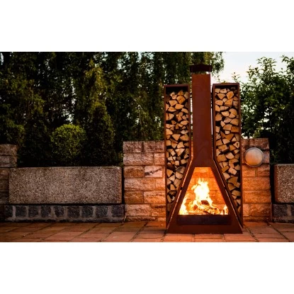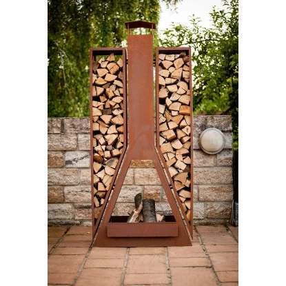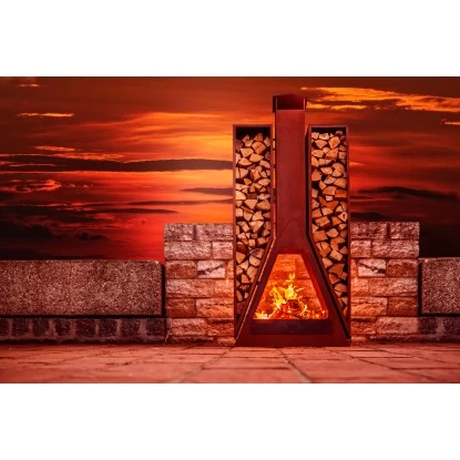 Der Kaminofen Twin aus gerosteten Stahlblech ist sehr robust und ist ein wahres Highlight für jeden Garten oder Terrasse. Der Kaminofen hat zwei Aufbewahrungsfächern für Holz und eine eingearbeitete Schiebeplatte, die das Entleeren der Asche vereinfacht.Produktdetails: