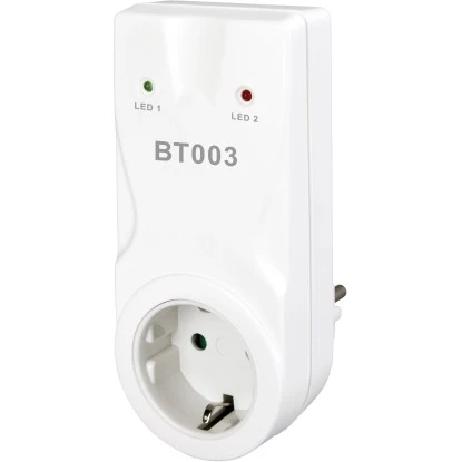 Der Funkempfänger Zwischensteckdose BT003 ist kombinierbar mit dem Thermostat BT710 oder BT010. Der Funkempfänger ist zur Schaltung von Infrarotheizungen, elektrischen Heizkörpern usw. mit einem Netzkabel geeignet und hat eine Reichweite bis zu 200 m. Der Funkempfänger wird direkt in eine Steckdose gesteckt und besitzt 2 Funktions-LEDs.