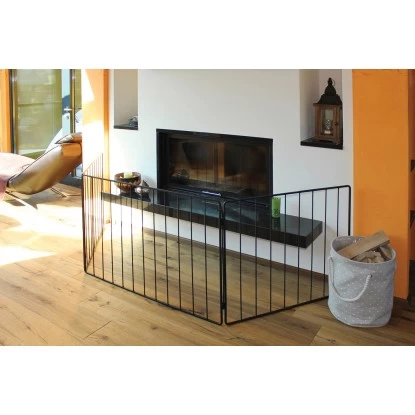Das 3-teilige Sicherheitsgitter in edlem schwarz beschichtet, dient als Barriere und verhindert so, dass Kleinkinder an heiße Stellen an Öfen gelangen.
