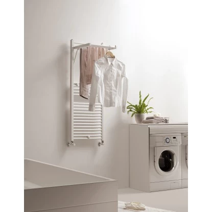 Der Badheizkörper Bianca wird mit Warmwasser betrieben und ist ein wahres Multifunktionsprodukt. Dank dem raffinierten beheizten 90°-Klapp-Element kann der Handtuchwärmer mit nur wenigen Handgriffen zum Wäscheständer oder zum Handtuchtrockner umfunktioniert werden.