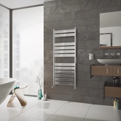 Badheizkörper in verchromter Ausführung finden speziell Anwendung als Handtuchwärmer und Handtuchtrockner.