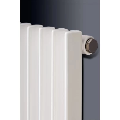 Formschöne vertikale Profile in Trapezform verleihen diesem Designheizkörper eine strahlende Eleganz.
